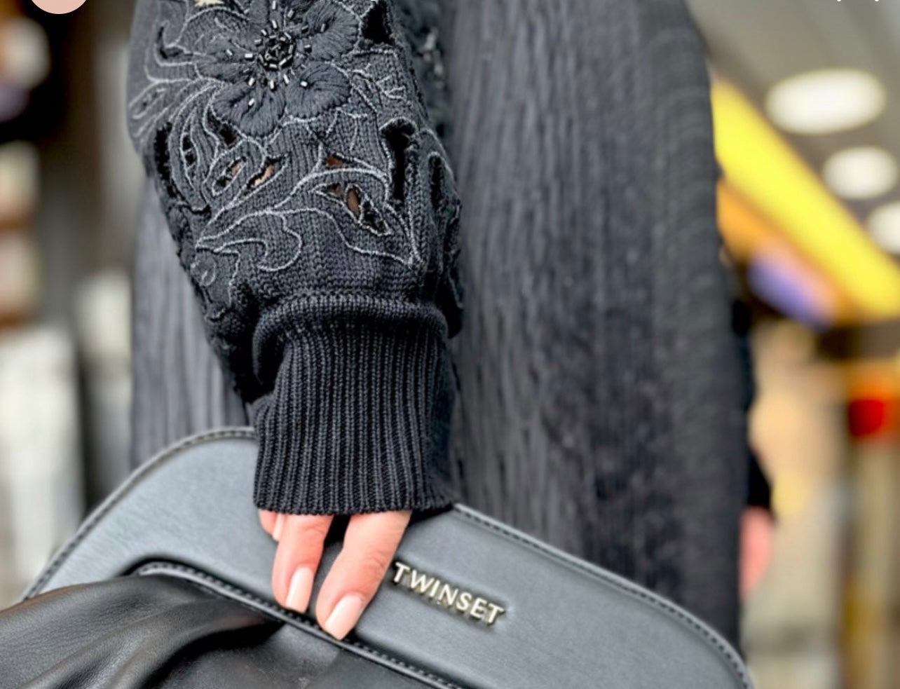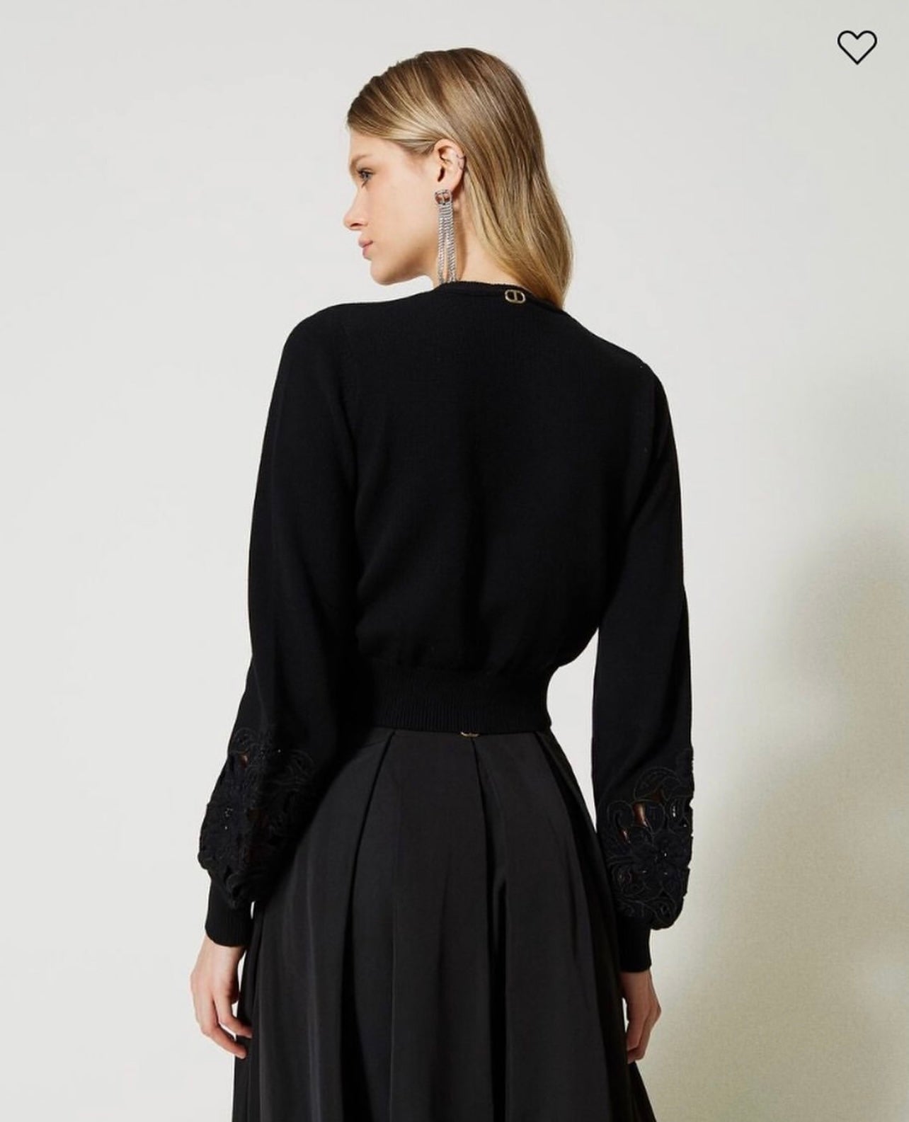 Cotton cardigan with placed broderie anglaise-like embroidery with handmade crystal bead and coral finish, loose fit.